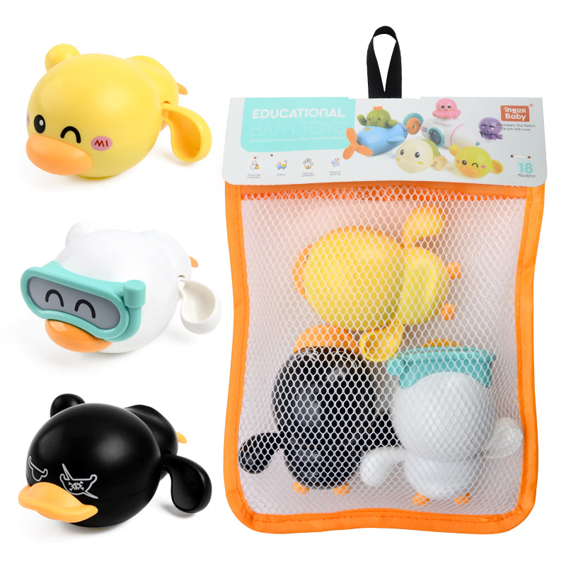 Badet bliver hurtigt fyldt med liv og bevægelse, når disse små optrækkelige badedyr sættes i vandet 🛁 Med et par drej på mekanismen begynder de at svømme afsted, og barnet kan følge dem rundt i badekarret igen og igen – en enkel leg, der skaber stor begejstring.