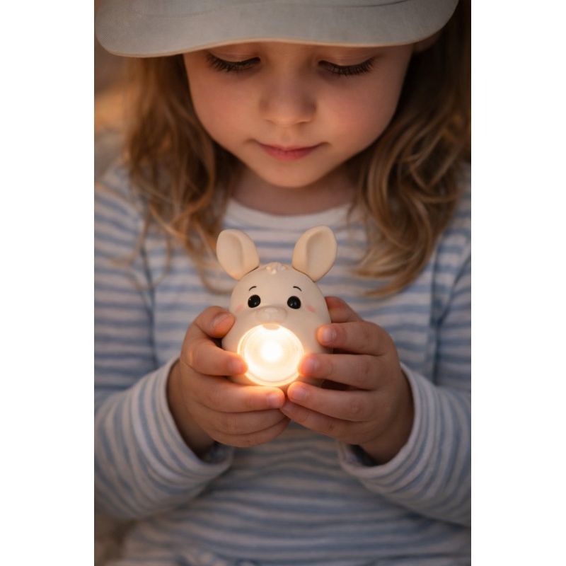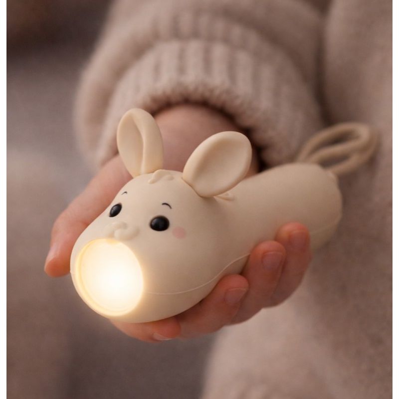 Den bløde silikone føles rar i hænderne, og formen er skabt, så barnet nemt kan holde om lommelygten selv. Lyset er behageligt og kan bruges både til at finde vej i mørket, læse under dynen eller skabe små, magiske øjeblikke i huler og legetelte. Med den praktiske rem kan den hænge om håndleddet eller på tasken og tages med overalt.