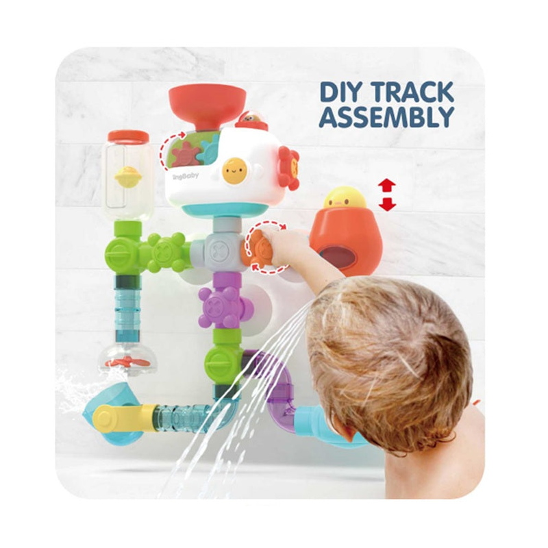 Badet forvandles hurtigt til et lille eksperimentarium, hvor vandet løber, drejer og overrasker på nye måder hver gang. Med denne fine ubåd-vandbane bliver vandleg til en levende oplevelse, hvor barnet kan følge vandets rejse gennem rør, hjul og små bevægelige elementer 💦