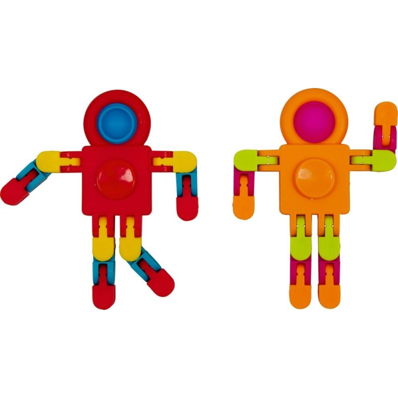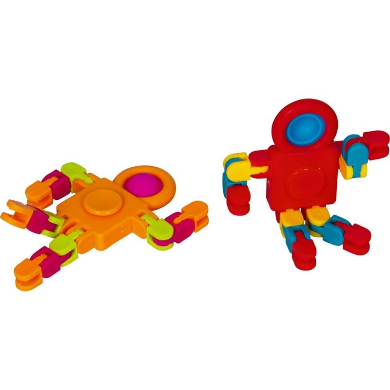 Arme og ben kan bøjes efter ønske, og hovedet popper op, når det trykkes ned - og når det foldes sammen, forvandles det til en fidget spinner.