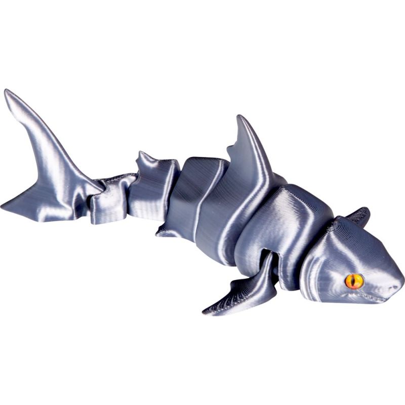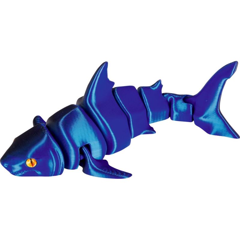 En sej og fascinerende haj, der straks vækker nysgerrighed og eventyrlyst hos børn, der elsker havets spændende univers. Den metallic 3D-printede haj fra Spiegelburg har en fleksibel krop med bevægelige led, som gør den levende i hænderne og klar til fantasifulde lege på havets bund, i badekarret eller på skrivebordet. Hver bevægelse får hajen til at sno sig og skabe nye historier om dybhav, skattejagt og modige opdagelsesrejsende.
