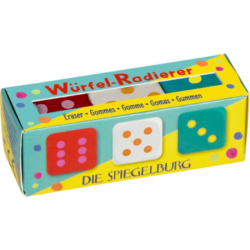 Et sjovt og farverigt sæt med tre viskelædere formet som små terninger, der bringer leg og glæde ind i penalhuset. De klare farver i rød, turkis og hvid med fine prikker gør viskelæderne til en lille favorit på skrivebordet, hvor de både pynter og gør skolearbejdet lidt mere underholdende. Her er et hyggeligt lille sæt, som hurtigt vækker smil hos børnene.