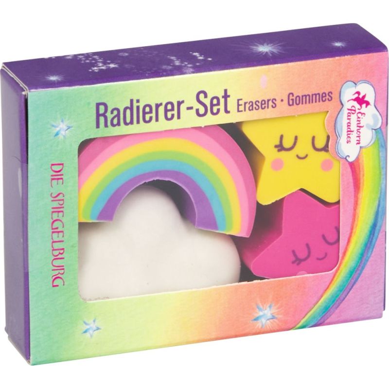 Et magisk sæt viskelædere, der bringer regnbuer, stjerner og en lille sky ind i penalhuset. De fine figurer i klare farver gør hver rettelse lidt sjovere og fylder hverdagen med fantasi og leg. Her får barnet ikke bare praktiske viskelædere, men små hyggelige figurer, der hurtigt bliver en favorit ved skrivebordet.