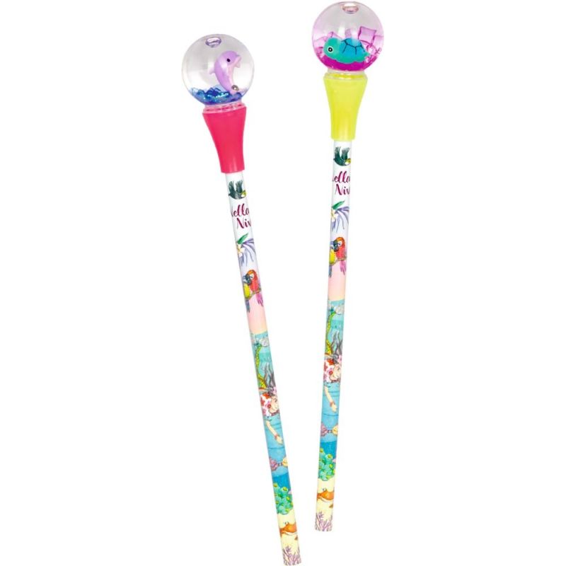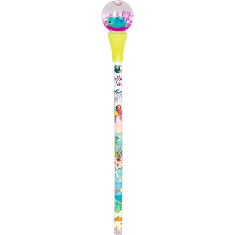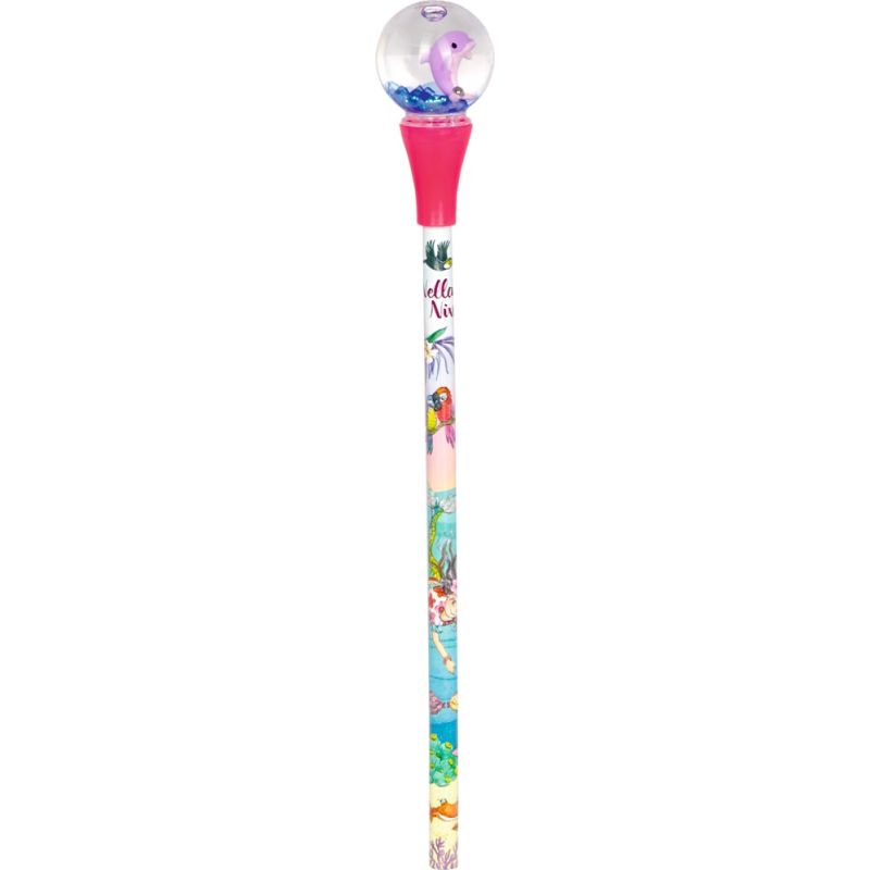 Det er altid dejligt at få nye blyanter til penalhuset. Her kan vi præsentere en sød blyant med snekugle med henholdsvis en delfin og skildpadde.