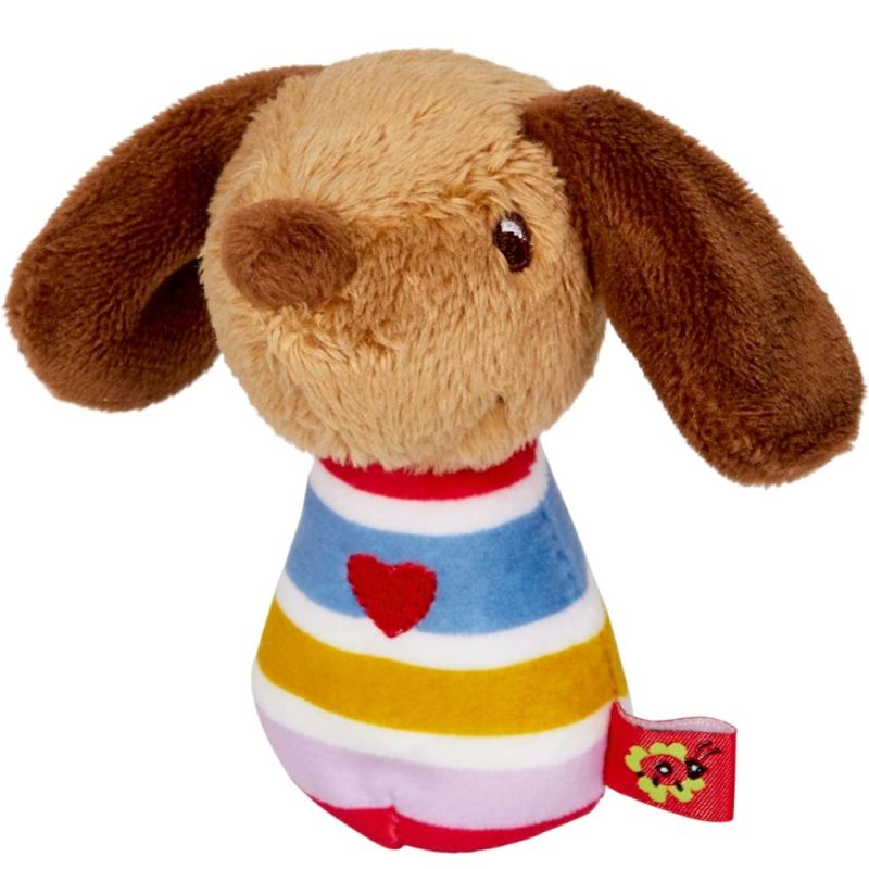 Denne fantastiske Hund mini rangle er slet ikke til at stå for, og med sin mangefarvede skribede krop, rødt hjerte og legende ører appellerer den til barnets nysgerrighed til at gribe fat, ryste og udforske.