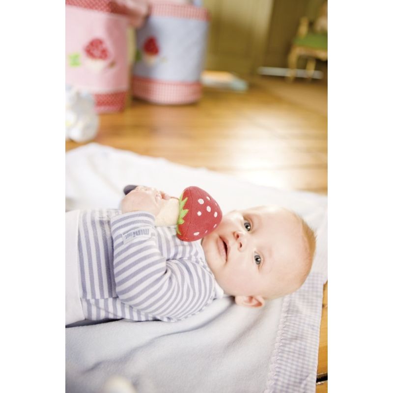 Denne fantastiske Rød svamp rangle er slet ikke til at stå for, og med sin ranke krop, firkløver og røde svampe hoved med hvide prikker appellerer den til barnets nysgerrighed til at gribe fat, ryste og udforske.