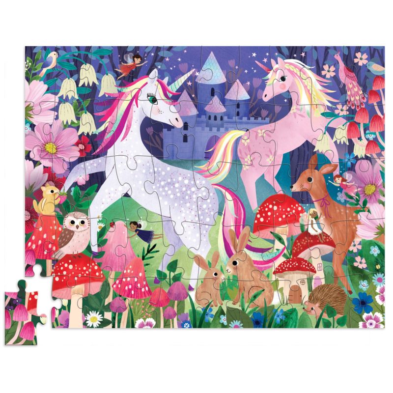 Dette eventyrlige puslespil fra Crocodile Creek fører barnet direkte ind i en magisk verden fyldt med enhjørninger, blomster og små fantasifulde væsner. Mens brikkerne samles, folder et fortryllende slot og en farverig enhjørningehave sig ud, hvor der altid er nye detaljer at opdage. Det skaber en hyggelig stund med ro, fordybelse og masser af fantasi, hvor legen får lov til at blomstre.