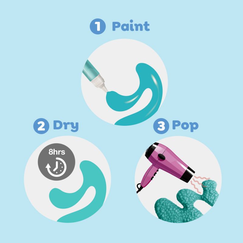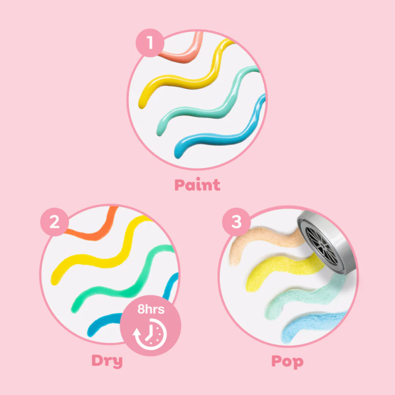 Kreativiteten får et sjovt twist med disse farverige Popcorn Puffy Pens, hvor tegninger kan forvandles til spændende 3D-kunst. Barnet kan tegne mønstre, figurer og små kunstværker, som efter tørring får en helt særlig effekt, når varmen fra en hårtørrer får farverne til at hæve sig, knitre og “poppe” som popcorn. Det skaber overraskelse, grin og en sanselig oplevelse, der gør tegnetiden ekstra magisk.