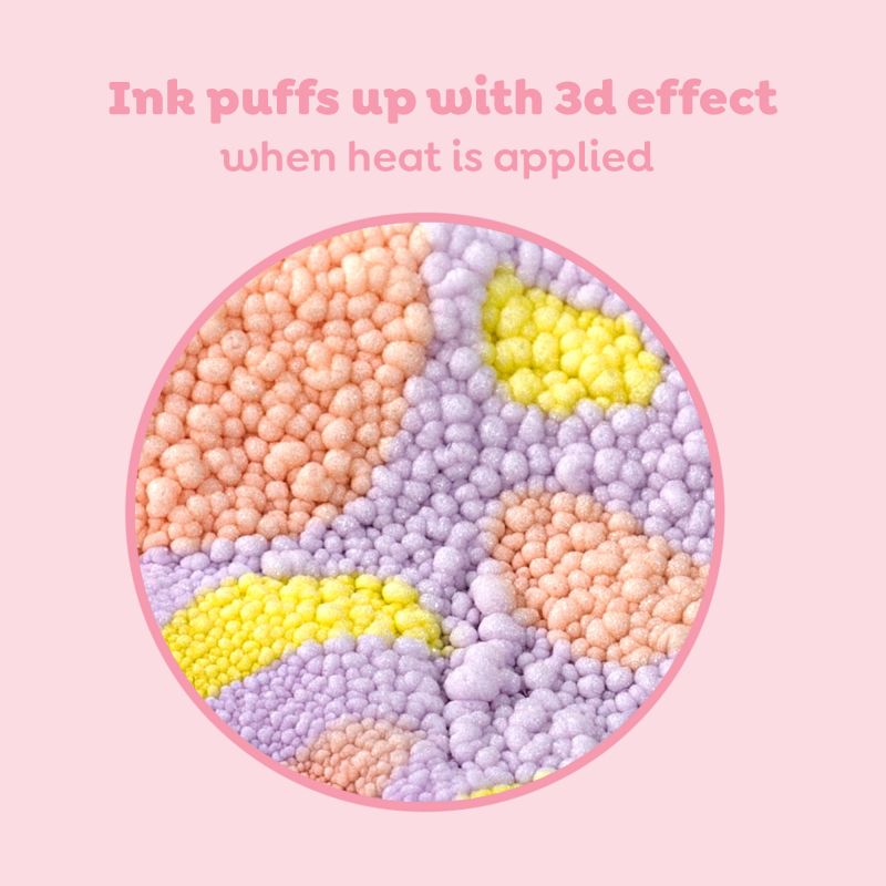 Farverne påføres som maling og får en puffet 3D-effekt ved varme fra hårtørrer.