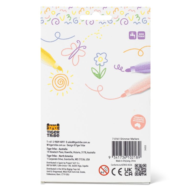 Tegninger får et strejf af magi med disse smukke glimmertuscher i bløde pastelfarver. Barnet kan tilføje glans og glimmer til farvelægning, kort, tegninger og små kunstprojekter, hvor fantasien får lov at skinne lidt ekstra. De fine regnbuefarver lægger sig jævnt på papiret og giver et funklende resultat, som gør selv de mindste detaljer særlige.
