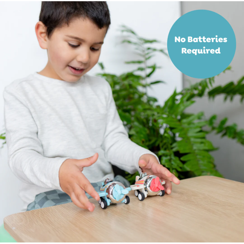 Det fine retrodesign med blanke detaljer og bløde former vækker nysgerrighed og fantasi, mens legen styrker både motorik, koordination og forståelsen for årsag og virkning. Flyet kræver ingen batterier og er skabt til gentagelser, hvor barnet kan trykke, slippe og se, hvordan bevægelsen straks sætter gang i legen.