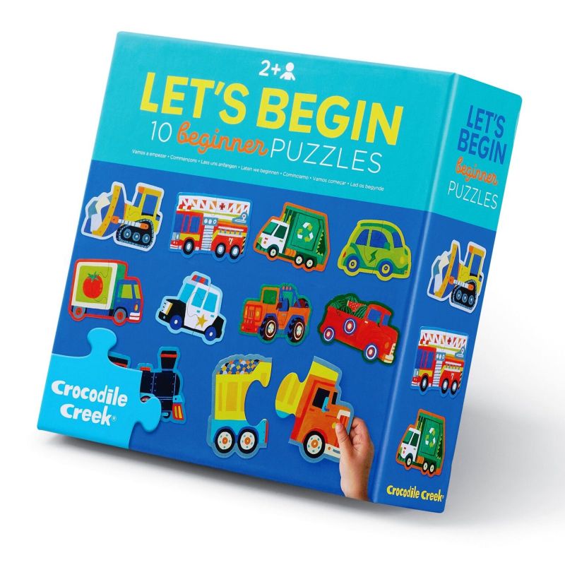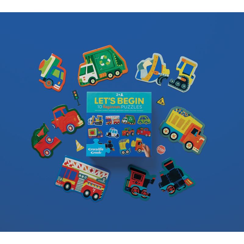 De første puslespil er noget helt særligt. Her begynder barnets nysgerrighed at folde sig ud, og små hænder opdager glæden ved at samle to brikker, der passer perfekt sammen. Med Crocodile Creek Let’s Begin puslespil – Køretøjer åbner der sig en farverig verden af lastbiler, brandbiler, tog og entreprenørmaskiner, som inviterer til leg, læring og små sejre undervejs.