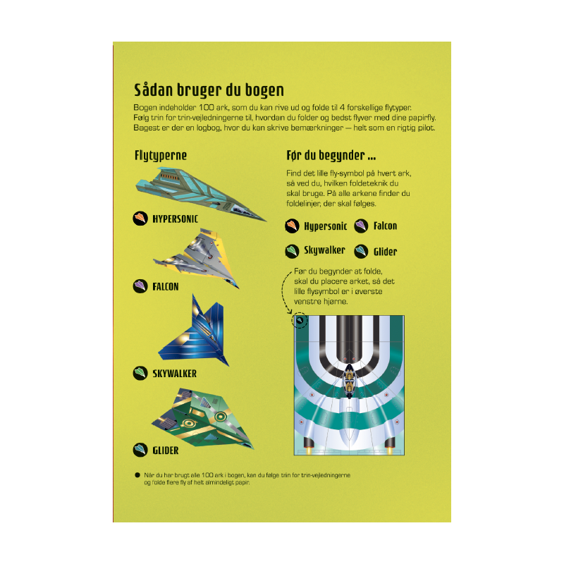 Bogen inviterer til timevis af fordybelse, hvor nysgerrighed og kreativitet går hånd i hånd med lysten til at eksperimentere. At folde papirfly styrker koncentration, tålmodighed og forståelse for form og bevægelse, samtidig med at aktiviteten føles både sjov og udfordrende. Bagest i bogen findes en logbog, hvor resultater og rekorder kan skrives ned, så der kan konkurreres med venner, søskende eller familie.