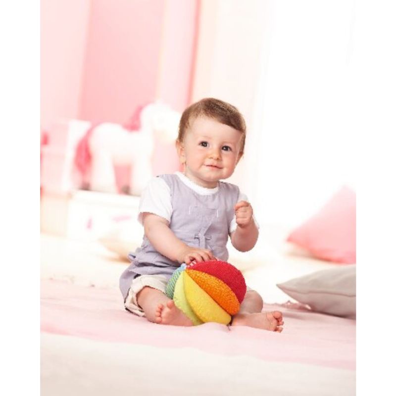 Regnbue aktivitetsbolden er en oplagt gaveidé til baby som en mulig første bold!
