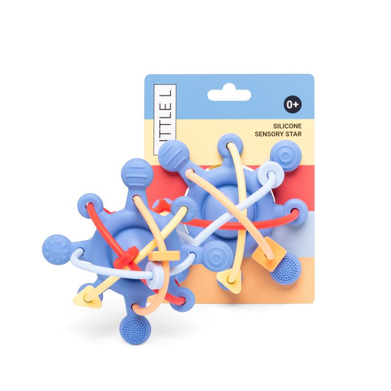 Little L stjerne rangle & bidelegetøj er et sanseligt og spændende stykke baby legetøj, der inviterer til leg og opdagelse fra de allerførste måneder. Den fine stjerneform med bløde, fleksible arme og rolige farver gør legetøjet fascinerende at udforske med både hænder og mund, mens de forskellige former, bevægelige dele og små elementer, der kan skubbes og drejes, vækker nysgerrigheden og styrker den tidlige finmotorik. Hver bevægelse giver barnet en ny oplevelse og hjælper med at forstå sammenhængen mellem handling og resultat – en vigtig del af den første læring gennem leg.