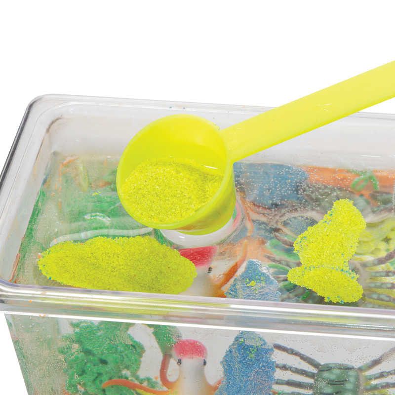 Nu kan jeres barns kreative evner blive udfordret med dette farverige modelleringssæt. Når sandet blandes med vand kan det formes til fantastiske skulpturer. For at gøre det fuldendt medfølger 2 plastik havdyr.