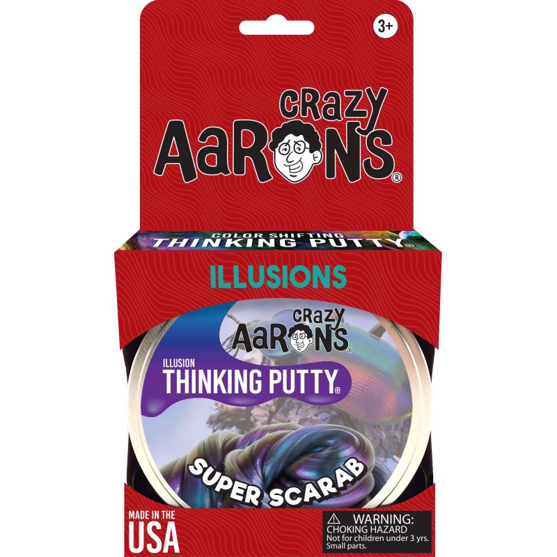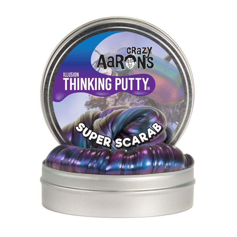 Denne Crazy Aarons SUPER SCARAB Stor Illusion udmærker sig ved at have et magisk farveskift, alt efter om barnet står i solen eller er indendørs i mørkere lys. Det er sjovt for barnet at opleve illusionen, medens der bliver hevet og drejet. SUPER SCARAB findes også i mini dåse her i Banditten.