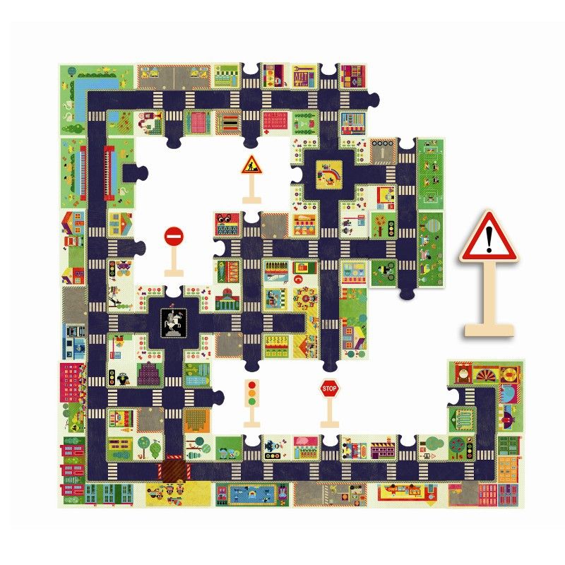 Dette kæmpe puslespil består af 24 kraftige brikker og danner en flot bilbane.