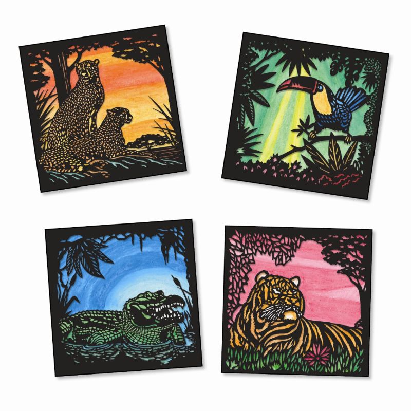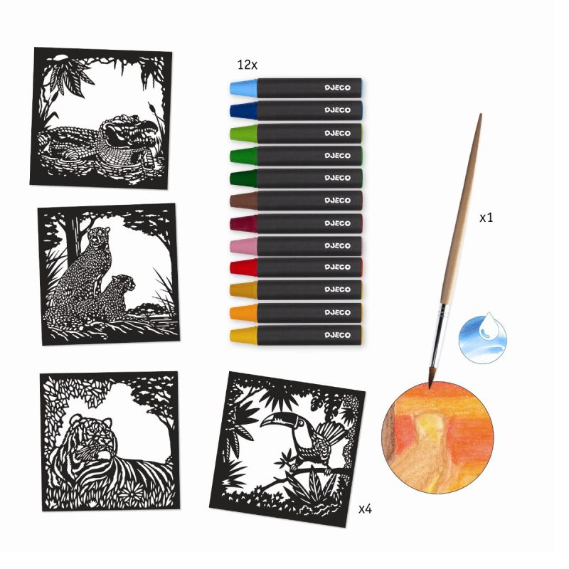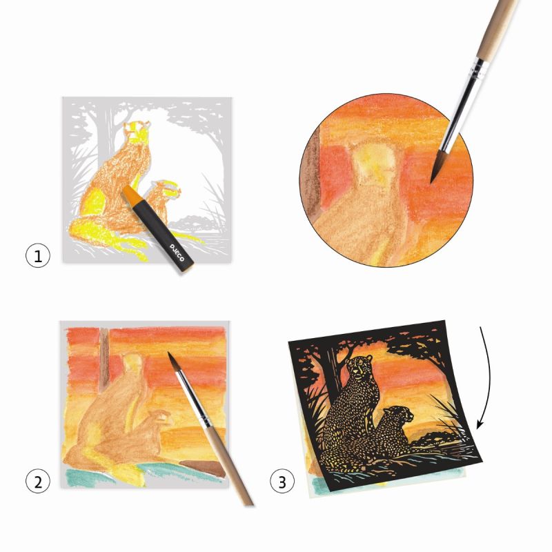 Når jeres barn er tilfreds med baggrunden, foldes det laser-skårede flotte sorte motiv ned over den malede baggrund, og den smukke og dramatiske effekt opstår.