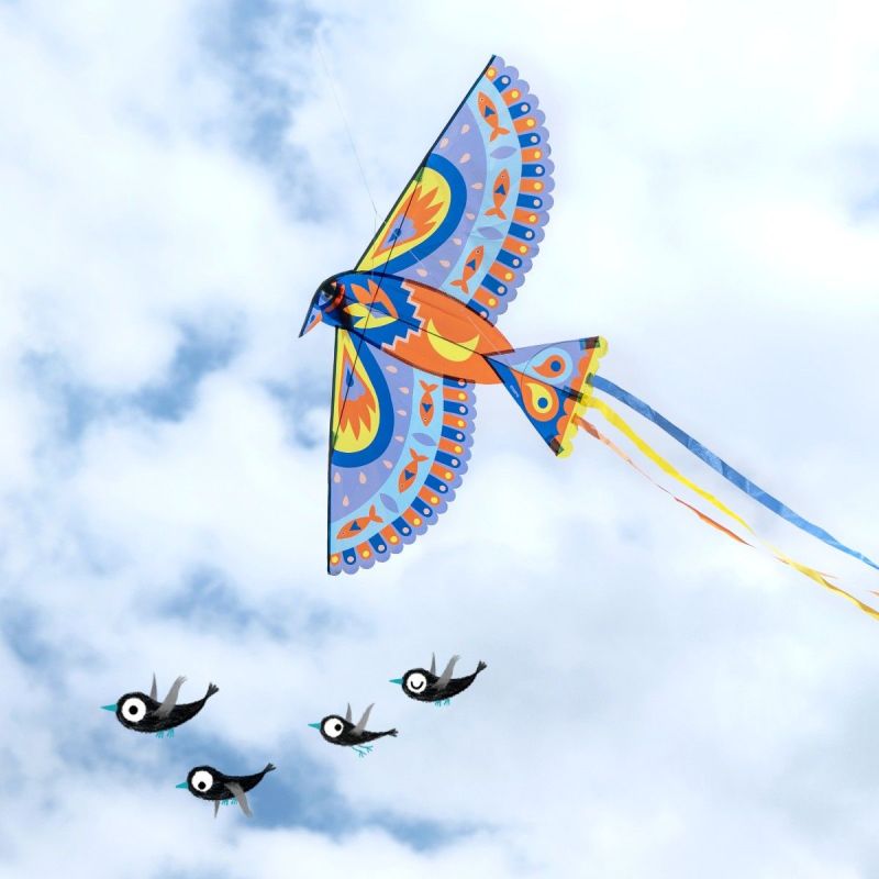 Maxi Bird er en imponerende gigant drage fra Djeco, der forvandler himlen til et farverigt eventyr. Med et vingefang på hele 125 cm og en smuk, grafisk fugleform svæver denne drage majestætisk gennem luften og fanger blikket med sine klare blå, orange og gule nuancer.