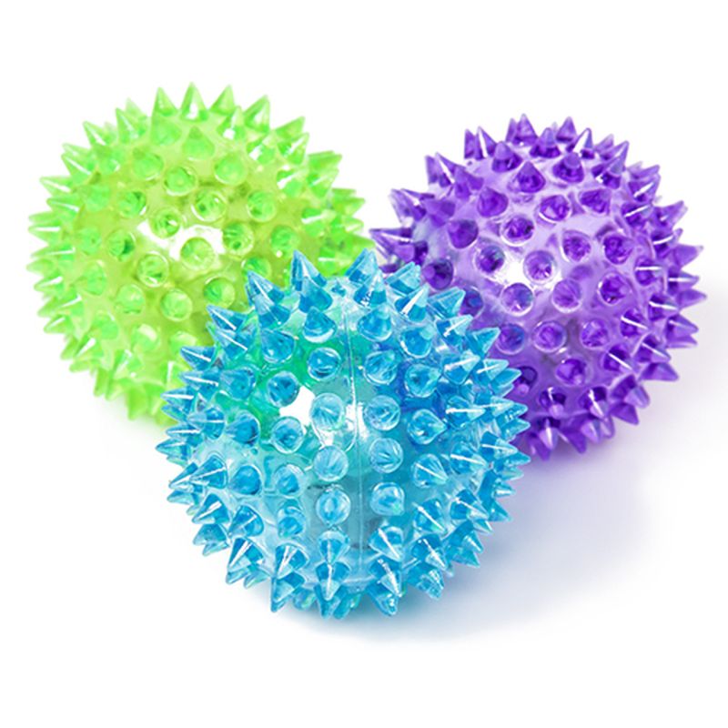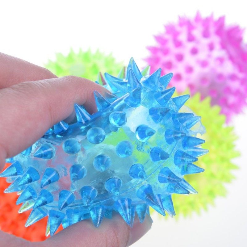 En farverig hoppebold med masser af liv! Denne spikey bold er fyldt med små bløde pigge og indbygget lys, som blinker flot, hver gang bolden rammer jorden.