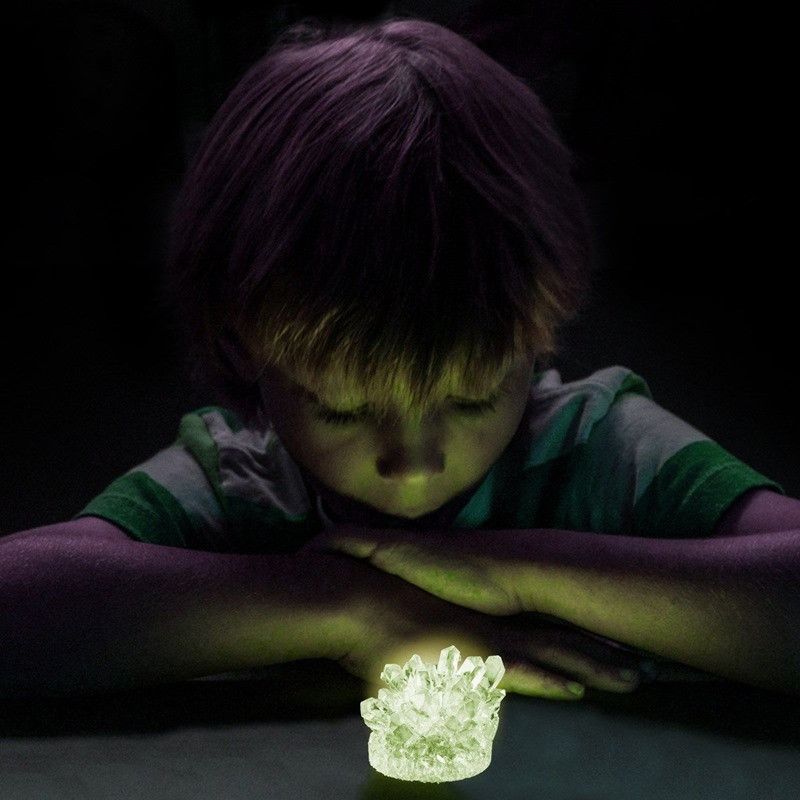 Nu kan barnet selv dyrke sine egne selvlysende krystaller og se dem vokse.