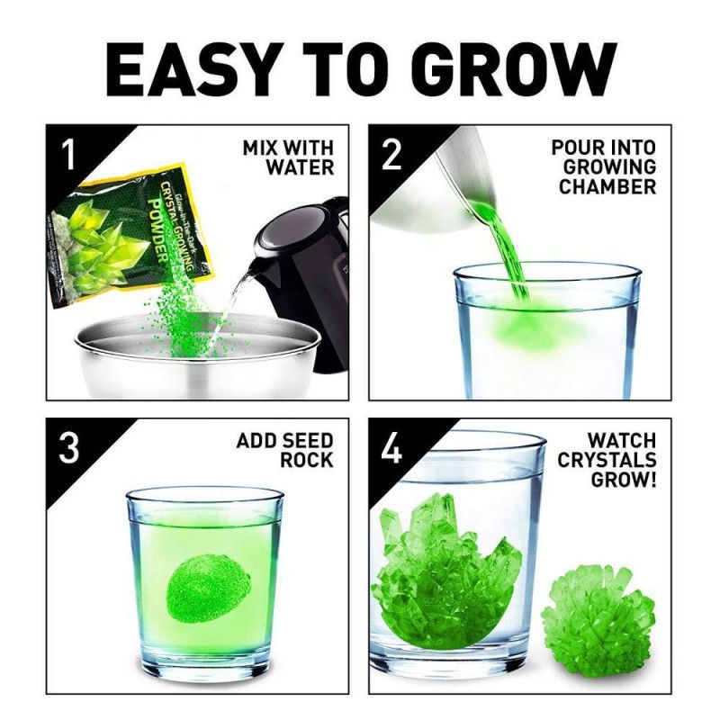 I vejledningen medfølger tips og tricks til at kunne få krystallerne til at vokse sig endnu større.