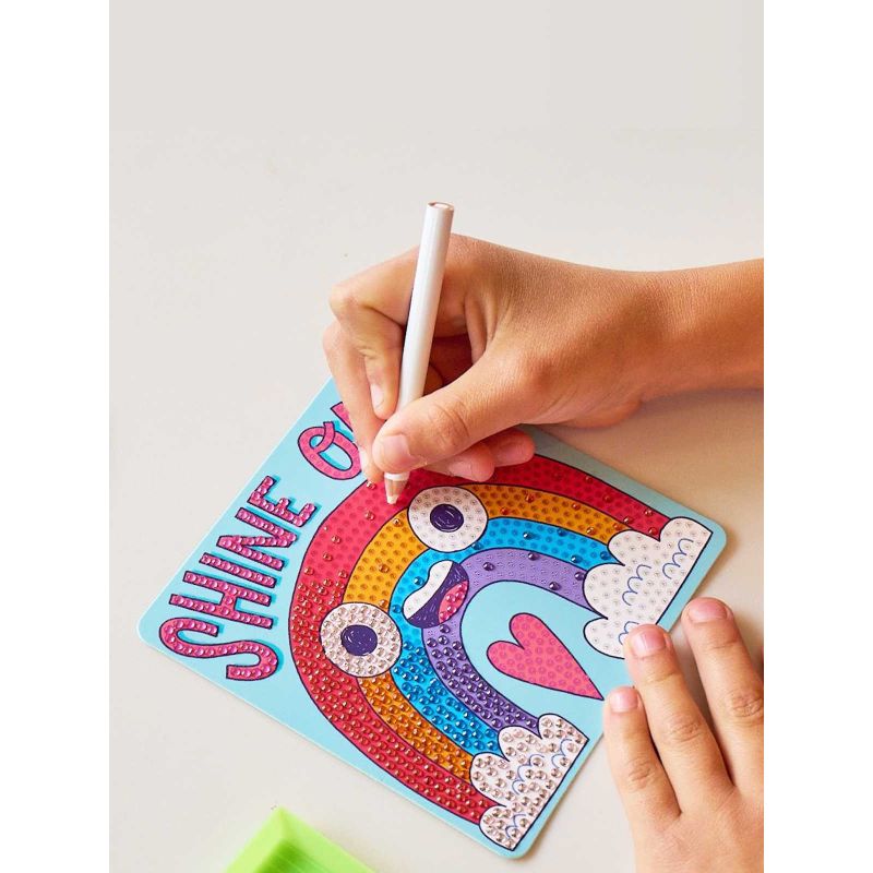 Diamond painting er en kreativ og sjov aktivitet for børn, der kombinerer maling efter tal og "bling bling" effekten fra diamantmaleri. Børnene følger enkle instruktioner for at placere små farvede perler på et selvklæbende lærred, hvilket resulterer i et smukt glitrende billede. Diamond painting er ikke kun en underholdende og afslappende aktivitet, men det kan også hjælpe med at udvikle finmotorik og koncentrationsevner hos børn. Det er en god måde at stimulere deres kreativitet og give dem en følelse af stolthed og tilfredshed, når de fuldfører et projekt. Med et bredt udvalg af designs og størrelser at vælge imellem, er diamond painting en sjov og spændende aktivitet for børn i alle aldre.