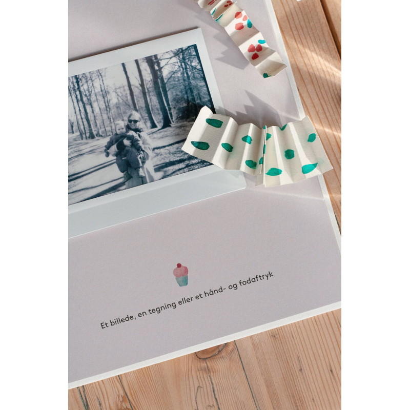 Hvordan og med hvem blev fødselsdagen fejret og hvilke fødselsdagsønsker blev opfyldt? Indsæt billeder fra dagen og skab en ny tradition med en årlig tegning eller et hånd- og fodaftryk. Skriv også højdepunkterne fra året der er gået, så I kan se tilbage på alle milepælene i barndommen.