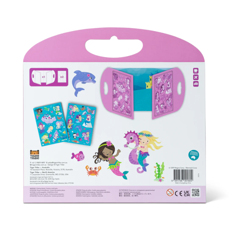Tiger Tribe Magna Carry – Mermaid Cove er oplagt til bilturen, ferien, cafébesøget eller rolige stunder derhjemme, hvor barnet kan fordybe sig i fantasifuld leg uden skærm. Den praktiske mappe kan nemt foldes sammen og tages med på farten, så den magiske undervandsverden altid er lige ved hånden.