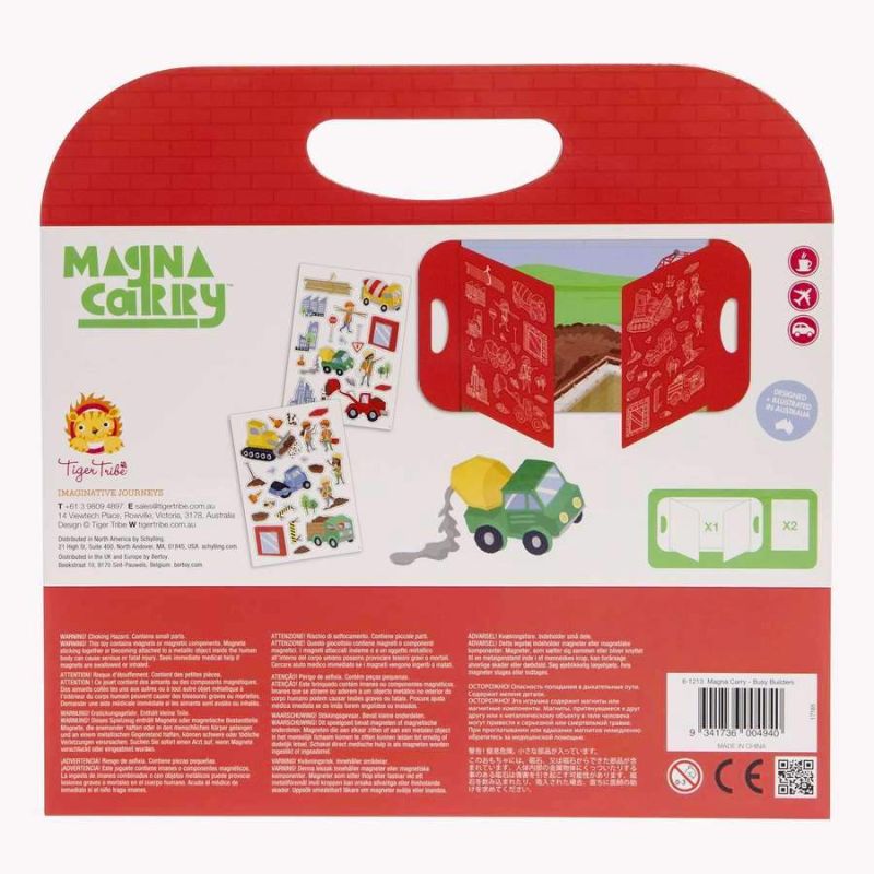Nu kan jeres barn skabe sin egen arbejdsverden inden for byggeri. Mappen åbnes, og en spændende verden dukker op. De fine magneter presses ud af arkene, og barnet kan nu flytte rundt på magneterne og skabe sine helt egne eventyr undervejs.