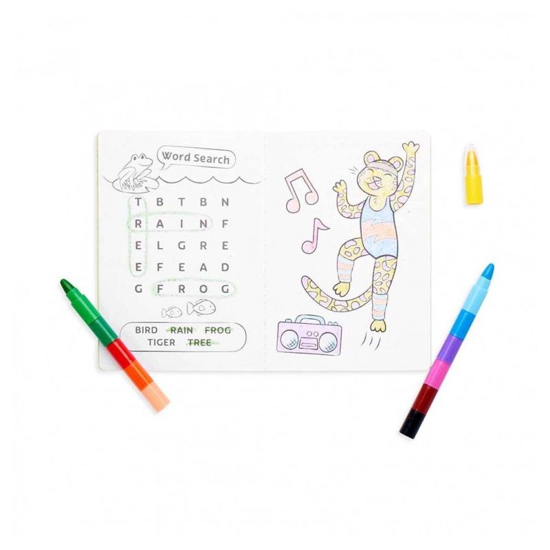 Sød lille rejsetaske med farver og aktivitetshæfte fra Ooly!
