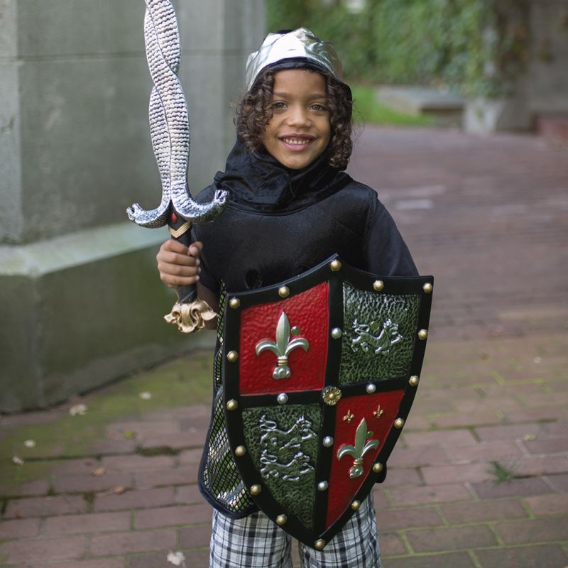 Et sværd og skjold er sjovt legetøj, der sagtens kan bruges til udklædning og rolleleg - selvom det ikke er Fastelavn.