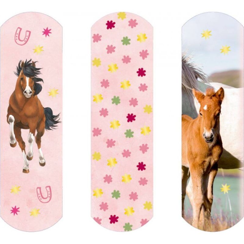 Når jeres barn har fået en skramme på arm eller ben, vil det helt sikkert hjælpe med disse fine plastre med fine heste. Pakken indeholder 10 stk. allergivenlige, vandfaste plastre.