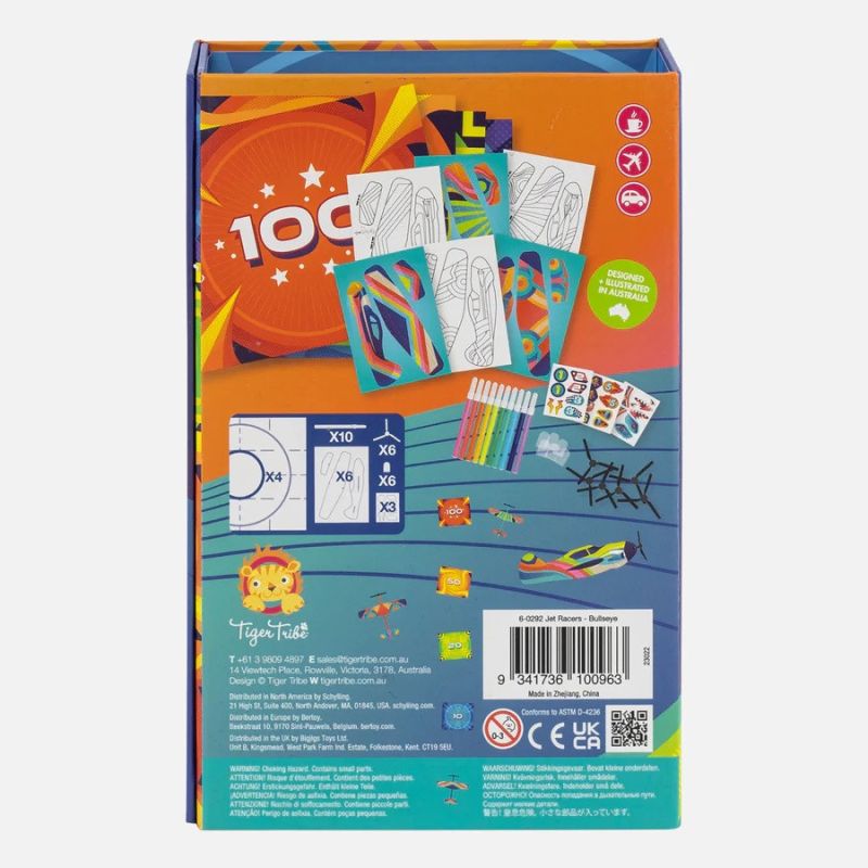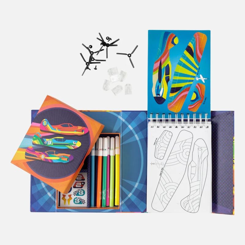 Med dette fine sæt kan jeres barn samle og male fine jetfly, og der er rig mulighed for at udfordre kreativiteten, da sættet består af 6 x popop skumplaner (3 fuldfarvet og 3 i omrids), 6 x propeller, 6 x beskyttende næsekegler, 3 x klistermærker, 4 x store måleark samt 10 stk. tuscher.