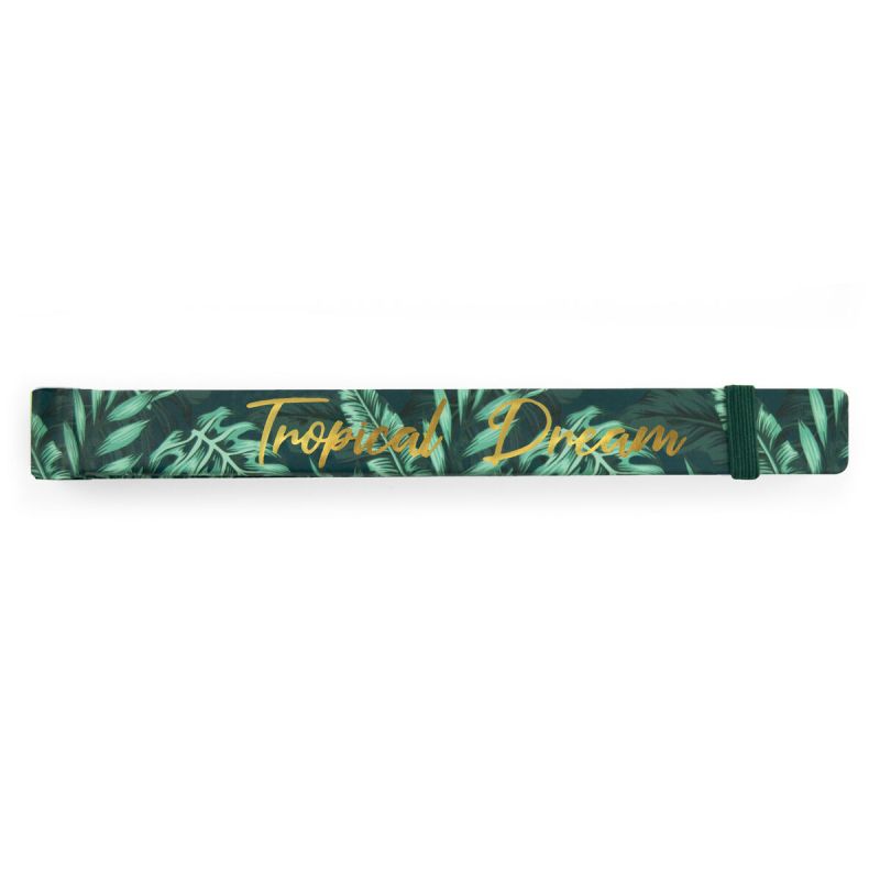 Det er dejligt med en vifte, når det er varmt eller der skal leges fin dame, og denne fantastiske store papir vifte har et flot motiv af fine tropical blade. Viften er udstyret med en lille elastik til at holde viften sammen, når den ligger i tasken.